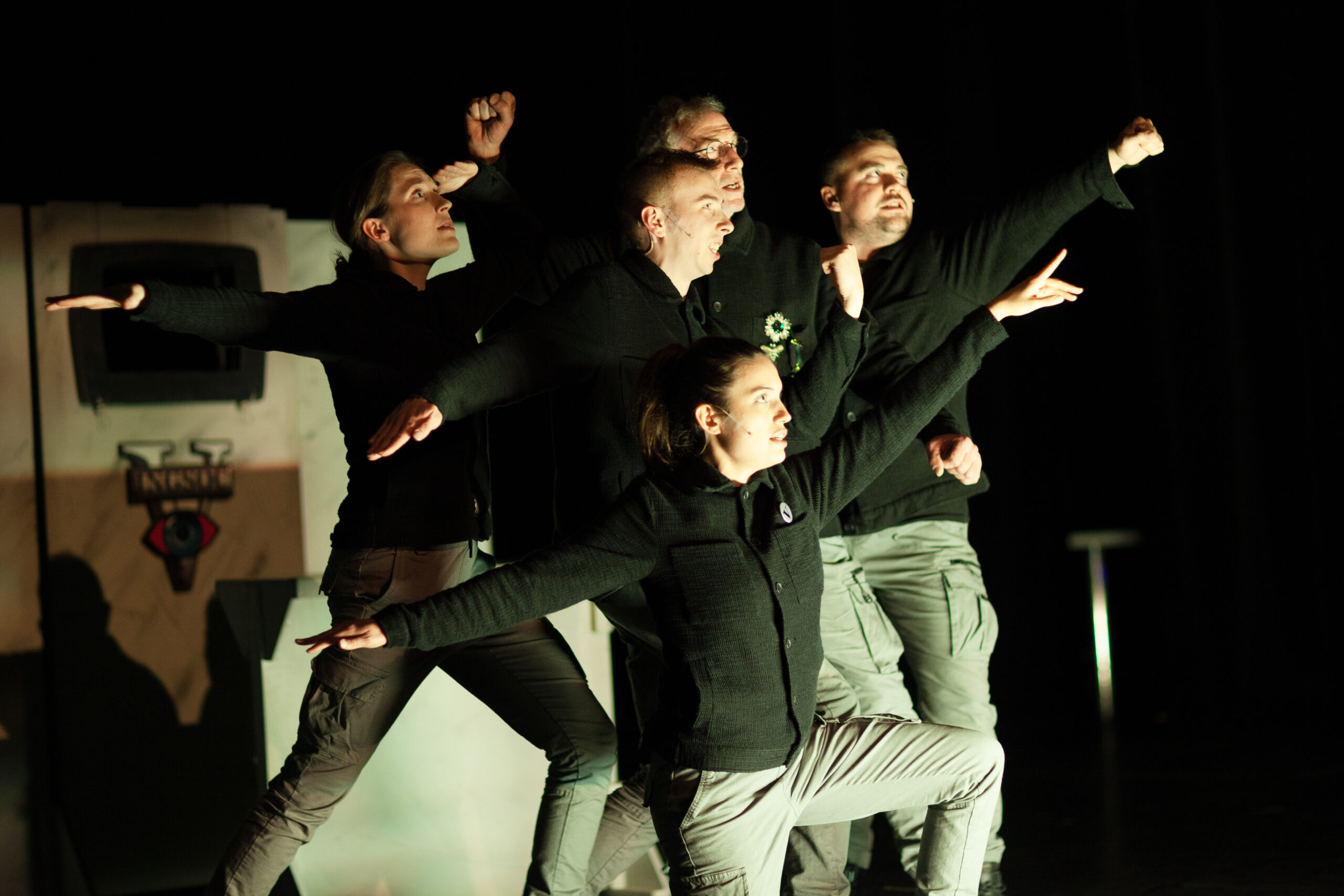 1984 may well be the most significant work of modern fiction. The company brings this work to the stage without seeking to simplify its message or dilute its power. The brilliance of 1984 is not only that it predicts a surveillance society in which we now exist, or that it exposes the lies behind every totalitarian ideology or belief, but that it explores these themes inside the human mind as well as in the outer world. “Thought Control” is the aim of the State in 1984, and this will be achieved by destroying language so that it is impossible to commit “Thought Crime”. Is Orwell’s vision any different from the dumbing down of our communication through digital media, the collapse of writing and the triumph of the digital banal? Orwell predicts a world where Ideology vanishes under the crushing impact of brute power, power for its own corrupt sake. Meanwhile, as Orwell predicted, War becomes a continuous condition of life, one that justifies any and every form of repression in the name of nothing. Against this pessimistic background stands the simple heroism and physical desire of the main chracters: Winston and Julia. Their journey through quiet rebellion to hope and despair happens in the outside world and within their minds. Our production follows their external and internal journey until they meet in the torture chambers of Room 101. Paul Stebbings directs a thriller and a love story, a mind game and an end game. Illuminated by a modern rock score from Christian Auer this production aims to tell what may be the greatest story of our time as we stumble towards an”Orwellian” future where Big Brother is watching YOU.